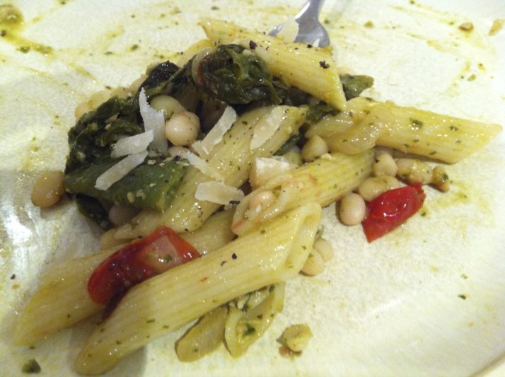 Pasta is not my first choice on the healthy, whole food eating spectrum, but sometimes it is so very good and satisfying and oh so quick to make a huge batch on those days you just need a meal on the table. I have made this with gluten free and whole wheat pasta, both are doable, but I prefer organic penne cooked just right. Use a quality store bought Pesto or use the Vegan recipe here. Toss ups a quick salad for the side. You can add grilled chicken if you like.
