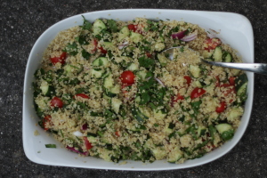 - When Quinoa is cool, toss gently with all the remaining ingredients