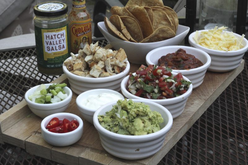 Another Friday night do it yourself meal saved by Mexican inspiration again. Nachos are usually greasy, fat laden gut bombs you eat at the bar when you want to kill your buzz. But you can set out all the right stuff to make these Make it Your Way Nachos, healthy, flavorful and still feel like you indulged just a bit. I always feel really full and satisfied, not bloated when I can make Nachos just the way I like them. I pile up baked tortilla chips with lots of beans, a tiny bit of cheese, loads of Salsa and Avocados and hot, hot, peppers. Bake Corn Tortillas in a hot oven with a sprinkle of salt until they are crispy to avoid the trans fat laden bagged chips. Let everyone pile up their tortillas with Beans, Chicken and Cheese. Pop it under the broiler until the cheese is melted and pile on the fresh toppings.