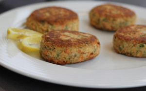 Growing up in Alaska, Salmon was like wonder bread for us. It was there all the time. Kings and Silvers, smoked, baked, burgers, unidentifiable Salmon casseroles were the norm. We had powdered milk and tang, but the Salmon was genuine. I didn’t eat Salmon for a long time after moving away from Alaska but since the Farmed Salmon takeover of unsuspecting Americans is upon us, I have renewed my passion for cooking Salmon in creative delicious ways that do not involve any casseroles. These Salmon Fishcakes are a great way to use up leftover fish but are so good and popular with my kids they are worth cooking up some just to make them. Serve with homemade tarter sauce, a squeeze of lemon and a nice tossed salad. They make great lunchbox fare, cold or stuffed into a sandwich with a smear of tarter sauce, ketchup and lettuce or shredded cabbage.